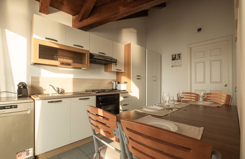 In Leggiuno, the holiday home Attico Borromea offers an excellent view of Lake Maggiore. The 150 m² property consists of a living room, a fully-equipped kitchen, 3 bedrooms and 2 bathrooms and can therefore accommodate 6 people. Additional amenities include high-speed Wi-Fi (suitable for video calls) with a dedicated workspace for home office, a TV, a fan as well as a washing machine.