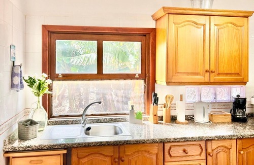 Enjoy the idyll among banana plantations with views of the TeneguÍa volcano. The house is in a quiet area, away from tourist areas. An ideal place to relax. Let yourself be enchanted by the magic of the island. Both hikers and nature lovers will find what they are looking for on La Palma. Capital of the island, Santa Cruz de la Palma, really worth a visit, with numerous restored mansions, small cafes and bars. This house is located on an organic production farm, so no type of poison or chemical is used. Activities nearby: Natural beaches and unforgettable natural impressions have something for everyone, whether hiking, family or beach vacation or looking for peace and relaxation. Visit the natural salt production facility and lighthouse on the southern tip of the island. Wine lovers won't get their money's worth here either. There is a cozy winery nearby. Not suitable for people with reduced mobility.