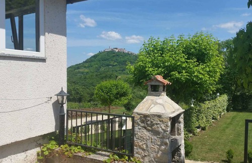The holiday home built in 1900, was renovated in 2006 and is a semi-detached house and furnished in a typical country style. The property is located in a residential area, on the outskirts. Also due to the view over a panorama from the property and its quiet and sunny location the domicile is popular. Available for your exclusive use: sunbathing lawn, parasol, sun lounger, children's playground, swing, garden shower, barbecue facilities, terrace, garden furniture and courtyard.LocationMotovun. The holiday home is located on a 350 sqm open garden plot with meadow, shrubs and trees. The landlord lives in a separate building on the property. Access is via a side road (asphalted). Parking is available on the property. Specialair conditioning. 4 devices.Facilities: internet access (WLAN) and washing machine. TV reception takes place via satellite. PoolAll pools are available for exclusive use. Outdoor pool (usable from mid May to mid September, 3,5 m x 7,3 m, depth 1,5 m). Dogsallowed. Free of charge. DistancesShopping 3 km, restaurant 500 m, town center 3 km. discotheque in Poreč 20 km. airport in Pula 65 km. In summer: Adriatic Sea 20 km in Poreč (beach 20 km in Poreč featuring gravel, stones and bathing plateaus). horse riding in Pazin 18 km. tennis, mini golf, diving each 20 km in Poreč. DivisionHoliday home, 3 floors, 5 rooms (including 4 bedrooms), 105 sqm, in total 9 beds (including 1 additional bed). RoomThe entrance to your holiday home is located on the ground floor and leads directly into the hallway.Ground floor: Living room with sitting area, DVD player, dining area and access to the terrace. Cooking nook in the living room with electric stove (4 plates), oven, extractor hood, fridge (icebox), microwave, coffee machine, toaster and electric kettle. Separate toilet with 1 washbasin and WC. 1st floor: Bedroom with 1 double bed, TV and access to the balcony. Bedroom with 1 double bed and TV. 2 bathrooms each with shower, 1 washbasin, WC and window. 2nd floor: Bedroom with 1 double bed and TV. Bedroom with 1 double bed, 1 additional bed on couch/sofa, TV and access to the balcony. 2 bathrooms each with shower, 1 washbasin, WC and window. Terms of lease and pricesIncluded in the priceOutdoor pool, internet access, air conditioning, parking place, washing machine, electricity, water, final cleaning, bed linen, pool, sunloungers, Wireless Internet access. Side costs-Additionally(Payable when booking)/local tax.Deposit:EUR 150,-/object