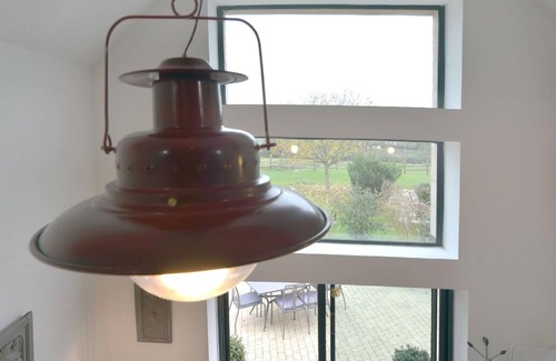 The former barn is unrecognisable. After being completely renovated, paying attention to preserving the old masonry and the wooden beams, the two-storey holiday house now provides 100m² of living space for five people. You will love the accomplished combination of old and modern. The ground floor (30m²) has a big living room-kitchen with a dining space and a modern, fully-equipped kitchen unit that provides everything you need. The big panoramic window on the side of the room provides ample daylight and affords wonderful views out as far as the green horizon. On the lower floor there is also a separate guest toilet with a washbasin and there is also a storage room with a washing machine. A modern spiral staircase leads upstairs, where you can find a big 30m² living room with a sofa and a flatscreen TV, with an adjoining niche room with a single bed. The bathroom next to it has a bath and a shower and there is also a second, separate WC. The hallway leads to the other two bedrooms, the first (23m²) with a double bed 160cm wide and the second (15m²) with two single beds 90cm wide. A cot and a highchair can be provided free of charge on request.