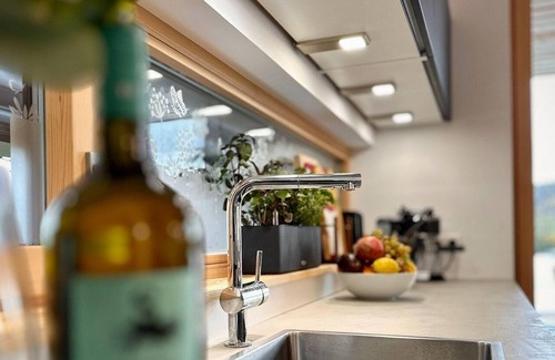 The first-class equipped kitchen, the home cinema, the wood-burning stove and the luxurious solid wood furnishings make this accommodation a place to relax and unwind.