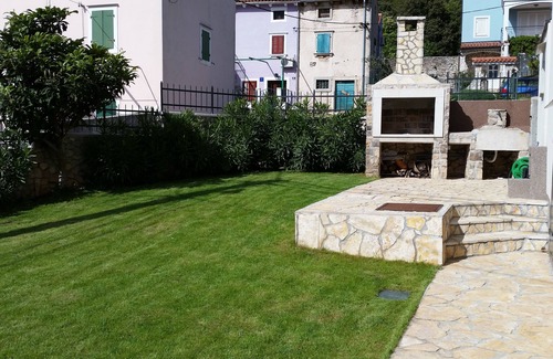 Holiday home in quiet location on two floors, in quiet and friendly town in Croatia at a 1 km from the sea, close to beautiful pristine beaches open all year. On the side of the canal Arsia equipped the beach and surrounded by woods. On the outer coast of the Kvarner beaches they are presented with white pebbles and crystal clear water, with a view of Cres, Losinj and Krk. Possibility of hiking, mountain biking and quoad hire. In the nearby resort town of St. Marina is the center of diving. Near the resort of Rabac. On the first floor with large open plan day climatizzatta area used as a living room with sofa bed, table 6 people, TV and fully equipped kitchen with an oven and hob (both gas and electric plate). Besides all the dishes and cookware it is also provided mocha espresso as well as an American coffee. Large bathroom with tub equipped with shower and washing machine. On the second floor are two double rooms both air conditioned and equipped with TV. Ambling outside patio partially covered by a roof with exposed beams with a table and chairs in wrought iron. Garden of 100sqm overlooking the canal D'Arsia and Kvarner, with barbeque area with fireplace adjacent sink. The house is delivered complete with sheets, blankets and towels. The linen and cleaning is done every week. Available on request the cot for children under 3 years and the high chair. Small pets allowed.