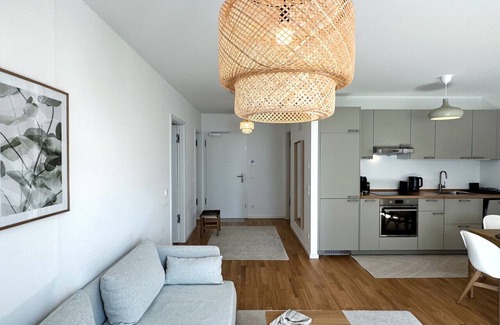 Experience upscale comfort in this elegant 1-bedroom apartment just 5 minutes from Berlin Brandenburg Airport (BER). Enjoy a spacious living area, fully equipped kitchen, private terrace, high-speed Wi-Fi, and free parking. Ideal for business travelers or holiday guests, this quiet retreat offers quick access to Berlin city center, major transport links, and local dining options. A perfect blend of luxury, convenience, and privacy near the airport.