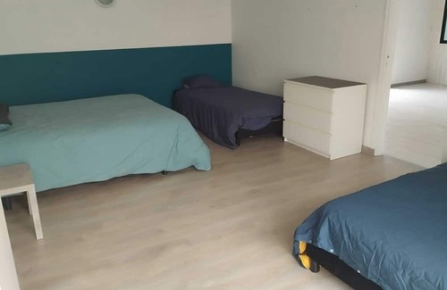 The house has 2 comfortable bedrooms, 1 including 2 single beds and a double bed and a private bathroom with a shower and 1 including 2 single beds and a double bed. The bathroom is fitted with a shower and a toilet.