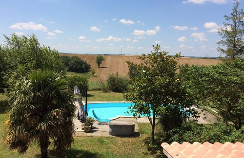 Rent in the heart of Lauragais in Haute-Garonne on a height a house with swimming pool and view of the Pyrenees. No vis-à-vis, facing south, quiet. The view is clear, the landscape in front of the house remarkable, gentle hills, sunflower fields, mountains on the horizon, magical at certain times. We are in little French Tuscany: Le Lauragais.