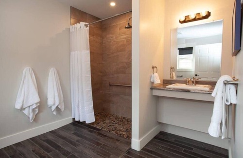 Enjoy a luxury stay at Indian Falls Chalets. This Place of Serenity Forest Chalet is 1 of 3 high-end chalets on the property. Open all year and wheel chair accessible.