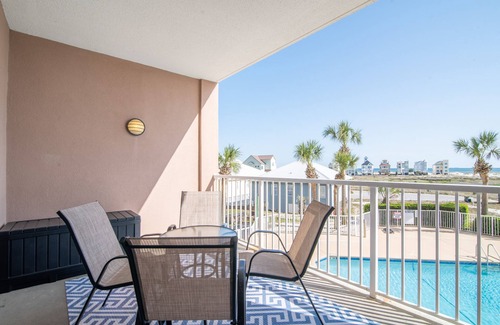 Soak up the pool views and partially obstructed Gulf views from the private balcony. A counter height 4-person table was added to the balcony after the pictures. Enjoy ships passing by on the way to Mobile Bay. Beach items are provided in a deck box on the balcony.