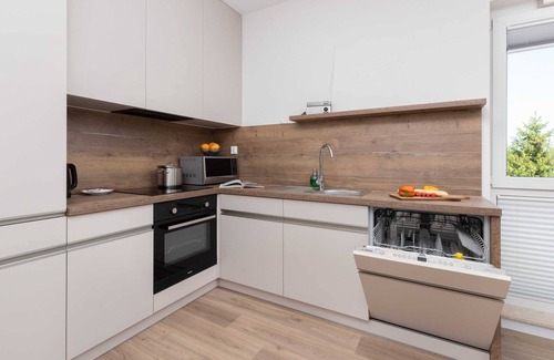 This comfortable apartment can accommodate 4 people. It consists of a living room with kitchenette, a bedroom and a bathroom with shower. The interior is decorated in bright, cheerful colours, creating a homely atmosphere. Equipped with a comfortable sofa and a Tv with cable channels, the living area is the perfect place to relax and unwind. The apartment has access to free high speed wifi internet. The bedroom has a very comfortable double bed. There is a spacious balcony with garden furniture where you can enjoy your morning coffee with a beautiful view or relax in the fresh air after an eventful day. In addition, the kitchenette is equipped with high quality appliances (microwave, dishwasher, oven) that will allow you to prepare your favourite meals. The wide range of facilities and the fact that the apartment is fully equipped with all the necessary kitchen and bathroom accessories and equipment guarantee a comfortable stay. To facilitate the start of each stay, a complimentary set of toiletries (soap, shampoo and shower gel), towels and bed linen are provided. The location of the apartment will certainly allow you to feel the atmosphere of the city among the main attractions of Gda?sk. The flat also has a private parking space in the garage, which is a great advantage especially during the holiday season. These advantages make the apartment an ideal choice for a carefree stay in the Tri-City.