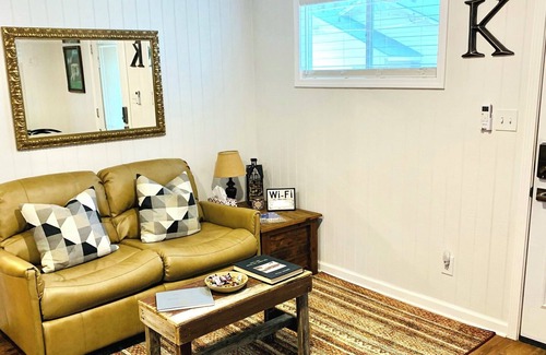 Kuby's Place has 1 queen bedroom with 1 full bathroom ensuite. The kitchen is fully equipped with kitchen island seating. Bring your own food to cook out on the grill and enjoy the wonderful, large patio. The bathroom should have everything you need: towels, soaps, essentials and hair dryer. Pets up to 50 lbs. are also allowed for a $35 fee. There is no fenced area for pets.