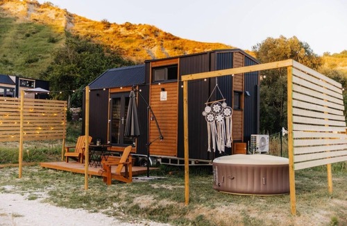 A comfortable, 221-square-foot tiny house with easy access to water, split air conditioning, a kitchenette, cooking equipment, and excellent bathroom facilities. These amenities an eco-friendly cassette toilet with a removable waste holding tank, hand basin, and shower (electric heated for hot showers). There are three tiny houses on the property.
