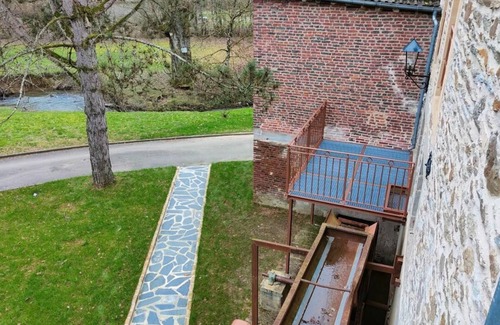 In a green setting, with direct access to the natural regional park, building on 2 floors including 2 gîtes on 150m² land (swing). You will be lulled by the lapping of the stream and the movement of the wheel. Ground floor: kitchen (microwave, freezer), living room (TV), 1 bedroom. access via 3 steps (1 bed 160 x 200 cm). WC. Bathroom. Floor: 1 bedroom. (1 bed 160 x 200 cm). WC. Beds made (sheets provided). Towels provided. Housekeeping included. Heating by heat pump. Safety and protection work on the wheel and construction of a terrace above the wheel in progress. A common laundry room will be built next year. Land to share with the other gîte. Owners' house on the property.