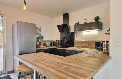 The cottage offers you: - On the ground floor: a large living room with fully equipped kitchen, living room and lounge. A parental suite (1 bed 160x200) with private shower room/wc, then a separate toilet and a garage with laundry area. - On the 1st floor: 3 large bedrooms (3 beds 160x200 including 1 modular in 2 x80), a bathroom (bath and shower) and a toilet. Outside: a garden, a concrete terrace with an inflatable 4-seater spa (accessible all year round), plancha, garden furniture and deckchairs. In front of the cottage: a gravelled courtyard to park cars. Garden under development - photo pending. Gite located in a recent subdivision with a few houses being finished. Both gateway to the estuary and border between river and ocean, Arzal is home to treasures of nature and heritage. At the Arzal dam, rent a canoe-kayak, a paddle, a motor boat to navigate the Vilaine or embark on a cruise ship. At the end of the day, take a stroll on the terrace of a café and admire the boats passing by. Don't miss the magnificent city of character of La Roche Bernard, hikers can get there by hiking trails (departing from the port of Arzal) and return by boat. For the beach, that of the Mine d'Or, bordered by orange cliffs, in Pénestin is worth a detour. Closer, the beach of Moustoir 3 km walk from the cottage, is ideal at high tide.