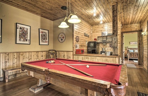 Inside, you'll find 3,400 square feet of warm, welcoming vibes. Whether you're whipping up meals in the fully equipped kitchen with sleek stainless steel appliances, shooting pool in the game room, or curling up by the fireplace, everything’s set up to make your stay easy and relaxing.