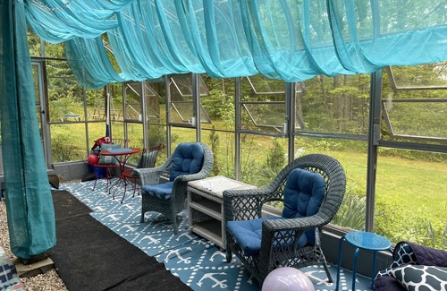 There are 2 bedrooms, 2 toilets 1-bathtub/shower. 2-king beds -Living room, dining room, large Sun room over looking lake, and full kitchen. We have all luxurious linens on beds. Hard wood floors. We are located on a paved main road that is easy to get to and plowed in winter