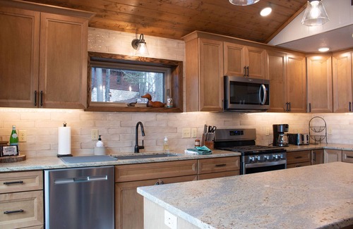 In the winter, hop on the snowmobile trails from the driveway or from the lake and head out for a day of fun. Four sets of snowshoes and three sleds are available for use during if you want to stay closer to home. Hot chocolate, coffee and tea are stocked to warm you up upon your return.