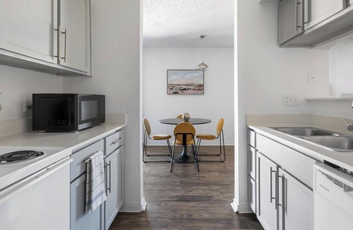 Make yourself at home in Austin’s vibrant Mueller neighborhood at Mueller Flats. Ideal for short getaways, extended stays, and everything in between, our fully-furnished apartments feature full kitchens with quartz countertops, hardwood-style floors, and private patios perfect for soaking up the Texas sun. Enjoy two sparkling pools, a 24-hour fitness center, outdoor lounges, and a bark park.