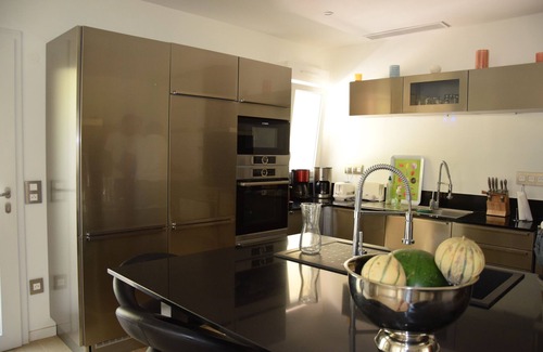- semi-professional stainless steel kitchen with 4-burner induction hob, 6-burner gas piano with plancha, 3 ovens including a large capacity, 2 fridges, 2 freezers