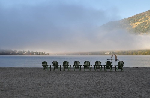 Lakeshore Boutique Inn is a beautiful facility on the shores of Kootenay Lake, a one minute drive from the city limits of Nelson, BC. It is the perfect place for your group to stay together yet have your own private bedroom. (We allow up to 24 people in your group). Nestled amidst emerald grass and a vast golden beach, we offer 11 bedrooms, each with a queen size bed and its own 3 piece bathroom. All the bedrooms and living areas are in one large building on the property.There are two large living rooms, one infamous for its breathtaking view of our waterfront, the other with a billiard table. The kitchen is well equipped and our large dining room offers an expansive view of Kootenay Lake.