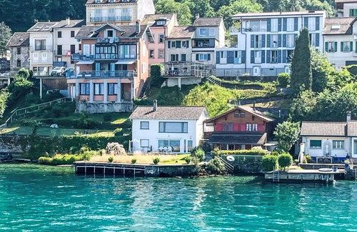 Cosy, rustic chalet "Le Cabanon". In a sunny position, on the lake. Stepped path (39 steps) to the house. Roofed, parking (limited number of spaces) at the house. Shop 15 km, grocery 450 m, supermarket 5.4 km, restaurant 400 m, bus stop "Gare St-Gingolph" 350 m, railway station "Saint-Gingolph" 400 m, thermal baths "Lavey-les-Bains" 31 km, bathing lake 1 m. Nearby attractions: Swissvapeur Parc, Bouveret 6 km, Aquaparc Bouveret 6 km, Evian-Les-Bains 17 km. Well-known ski regions can easily be reached: Portes du Soleil 40 km, Bernex FR 24 km. Well-known lakes can easily be reached: Lac Léman. Owner lives in separate semi-detached house. Neighbourhood highly sensitive to noise. Quietness and good behaviour expected.