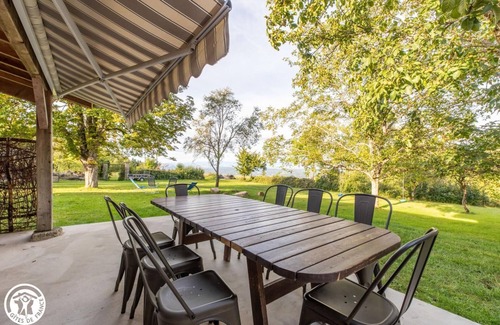 Stay at the Gîte des Trois Cousins as a tribe for a very comfortable stay in the heart of the Livradois Forez Natural Park! The gîte was completely refurbished in 2020 by local craftsmen using natural materials (lime/hemp plasters, etc.) and of regional origin! The result: exceptional accommodation where life is good, benefiting from an exceptional natural setting and a breathtaking view of the Puys chain and the Limagne fault! The gîte is located in Faux Martel, a hamlet perched above the fascinating town of Thiers, in the heart of totally preserved nature! It is composed on the ground floor: - an open living room-kitchen with a wood stove (a box of wood offered) - a living room - a bedroom with two 80 beds (can be joined) - a private shower room/wc (accessible to people with reduced mobility) Upstairs - a bedroom with two 80 beds (can be joined) and private shower room/wc - a bedroom with two 80 beds (can be joined), two 90 bunk beds (the top bunk is prohibited for children under 6 years old) and a private shower room - a separate toilet. Outside, you will enjoy a real haven of peace of around 2000m² with a sublime view (and in particular the LPO refuge), the superb orchard as well as a terrace with garden furniture and barbecue. The cottage is located near the cottage 63G1199 for 5 people and the cottage 63G1254 for 4 people. Many activities nearby: swimming and leisure centers, museums, castles ... Hiking and mountain biking from the cottage. 5 km away, - (Coutelia art knife festival, Pamparina festival, visit of the medieval city, the valley of factories and the cutlery museum. Easy access by the A89. Vichy and Clermont-Ferrand, Vulcania and the Puy de Dôme are less than an hour away.