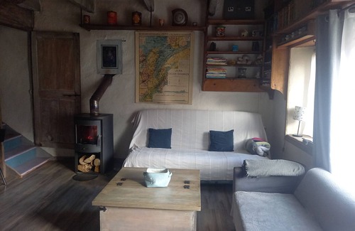 The living room with the press, the lounge, the fully equipped kitchen (dishwasher, fridge / freezer, microwave, coffee pods has ...), Wood burning stove.