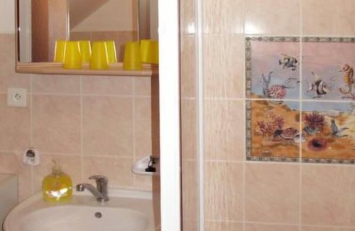 6-room house 270 m2 on 2 levels. Renovated in 2014, beautiful and stylish furnishings: playroom with dining table. Living room with Scandinavian wood stove, dining table, dining nook, bar, satellite TV and radio. 1 room with 4 beds and shower/WC. Kitchenette (4 hot plates, dishwasher, toaster, kettle, microwave, electric coffee machine). Electric heating. Top floor: 1 room with sloping ceilings with 6 beds and shower/WC. 1 room with sloping ceilings with 3 beds and shower/WC. 1 room with sloping ceilings with 3 beds and shower/WC. Studio with 4 beds, 1 double bed, dining table, kitchen corner, shower/WC, satellite TV and radio. With sloping ceilings, open kitchen in the entrance (2 hot plates, toaster, kettle, microwave) with dining table. Electric heating. Patio. Terrace furniture, barbecue. Facilities: children's high chair, baby cot. Internet (WiFi, free). Please note: suitable for families. Non-smokers only. 2 pets/ dogs allowed. The studio, which is located on the 1st floor, has a separate entrance from the back of the house.