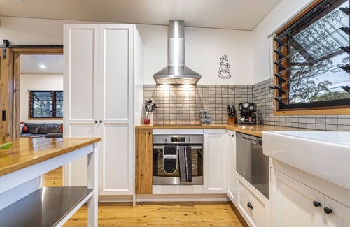 After a hard day at the beach or enjoying one of the many local attractions, relax with a cool drink or two on the covered veranda overlooking 2.5 acres of private bush reserve. Kangaroos come to graze on the lawns right at the house while Kookaburras laugh in the trees as the sun sets over the ridge. As night falls feel right at home in the 1000 thread count linens and warm doona.