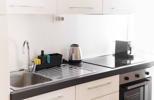 The apartment stands out for its contemporary design and layout, providing a cozy and refined environment. The living area is tastefully furnished, creating an ideal atmosphere to relax after a day of exploration and adventures in Varese. A comfortable sofa invites you to rest while you can enjoy the TV or share your experiences with friends and family through the free Wi-Fi connection.