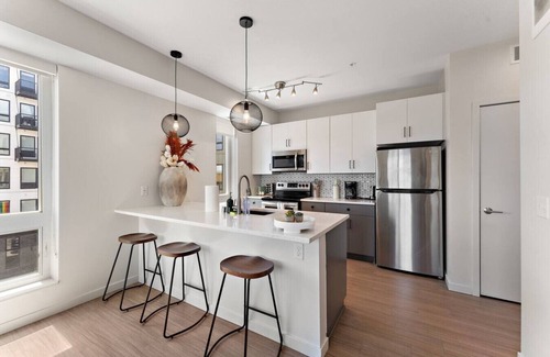 Welcome to Golden Prairie Nest, a bright 1-bedroom, 1-bathroom retreat (695 sq. ft.) in the heart of Eat Street at Nico Apartments. This stylish sanctuary combines Midwestern beauty with Scandinavian elegance, just steps away from diverse dining, art museums, and biking trails.