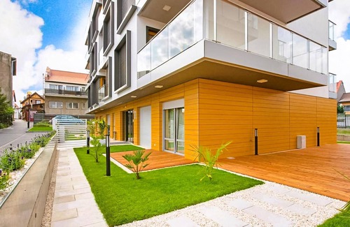 The long, iconic Hel Peninsula juts out into the middle of Gdansk Bay, and this large, modern apartment with its high level of comfort and exceptional quality welcomes you to the town of the same name at the end of this headland. After arriving by ferry from Gdynia, by train or by car, make yourself comfortable in the open, beautifully lit living room and settle in for a beach vacation at its best. Step out onto the magnificent roof terrace in the morning or evening and enjoy sunbathing, dining al fresco and gazing out to sea.