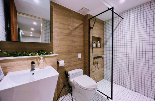 The unit is in a newly built apartment with red bricks on a hill overlooking old Heukseok (meaning black stone) neighborhood. Enjoy a relaxing space decorated in green them and biophilic style using natural wood.