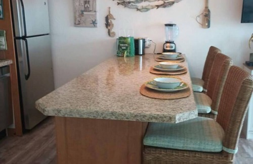 Enjoy the downstairs restaurant Flippers By The Bay, named "Best Waterfront Restaurant" Fort Myers Beach.