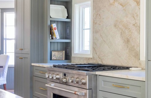 - Large kitchen island can double as a workspace