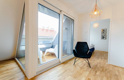 The stunning location and stylish décor are enhanced by the sun-soaked balcony from which you can enjoy mesmerizing views of Vienna.
