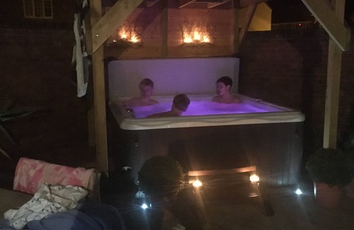 Outside there is a child friendly enclosed walled garden with decking and seating area for relaxing and alfresco eating. The 4 seater hot tub has a removable and lockable lid (no children under 8 years of age in the hot tub please). The garden is perfectly designed for containing children at play with a small children's park at the front of the house.