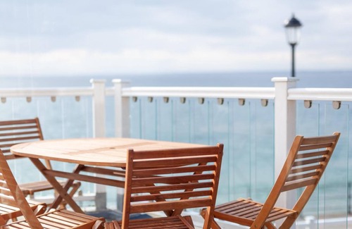 On the beach at Totland Bay– a unique living experience. A stay at Pilots Point, due to its location at the waters edge, is often likened to being onboard a cruise liner. The accommodation :- bedroom No.1. double bed with ensuite shower bedroom No.2. twin beds. 2nd bathroom with a bath, lounge/kitchen/diner. The charming apartment has its own private outdoor sun terrace, with spectacular views over the sea. In addition, the apartment has its own small private garden, with a wall of glass panels for shelter, overlooking the sea, together with a wooden gazebo ready for the 2021 season, with a gas bbq. For those visitors wishing to take a break from cooking, one of the Island’s most popular bar/restaurants - The Waterfront - is situated 200m along the promenade and open all day. There are 10 steps leading from the promenade to the apartment.