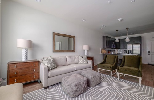 This beautiful one bedroom, one bathroom unit has all the amenities you need to feel right at home! The master en suite bath features a stunning glass door walk in shower. We do offer an air mattress for additional guests for a $25 fee. Please let us know if you need it. Main Street Flats is the premier lodging destination in downtown Trussville! We look forward to hosting you!
