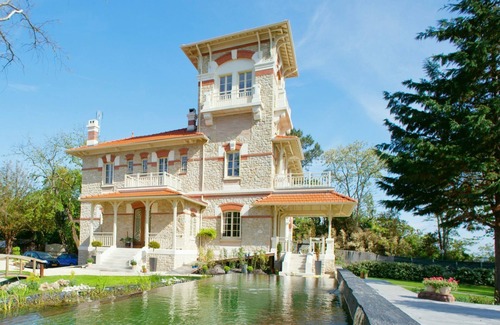 Just west of Bordeaux and tucked away in a serene cove off the French Atlantic Ocean, sits the beautiful and tranquil Villa Arcachon. It is a place where luxury accommodation meets exemplary service in an inspiring environment of land, sea and pine forest. This exclusive country estate offers eight refined bedrooms with ensuite bathrooms (four with original marble fireplaces), and includes a tower suite "La Tour" with 360 degrees floor-to-ceiling windows offering breathtaking sea and forest views. Other features include a cozy, club library with fireplace and an extensive international book selection, and a media/movie room with a 55 inch flat-screen TV and state of the art video system that can be converted in to a meeting room for seminars or confrences. For guests with restricted mobility, a specially built ramp offers access to the outdoor covered terrace, the dining room, as well as to a double bedroom, "La Verandah".