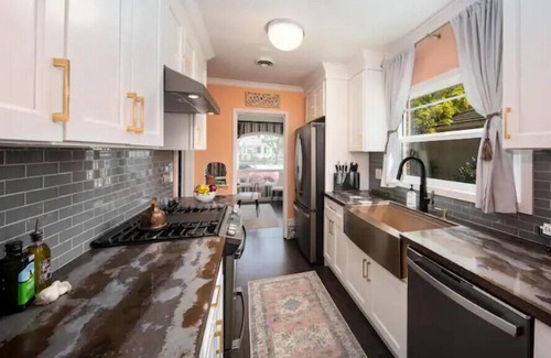 The Brick House is An Eclectic fully renovated vintage home in the heart of Lodi wine country, just minutes from the bustling downtown. A perfect get away for two couples allowing for complete privacy with the main house and back guest house, or as much togetherness as you want in the backyard Oasis. For your enjoyment: oversized hot tub, a game of darts, get cozy by the gas Firepit, play a game at the bar height table in the heat of the night, or enjoy a leisurely dinner under the pergola.
