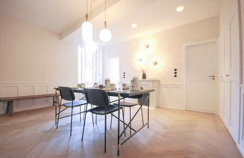 Maison Paul & Romy l'Horloge is the place for your vacation in Annecy. The 4 stars apartment on the 2nd floor above street level sleeps four in two double bedrooms and is newly renovated to a very high standard, with a cautious mix of contemporary design and antique.