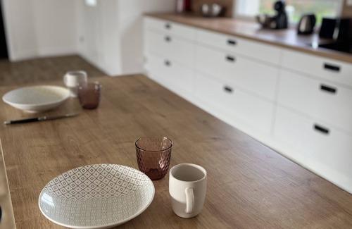 Télétravail: notre maison est équipée de la fibre très haut débit, de 2 bureaux, chacun avec écran, clavier et souris.