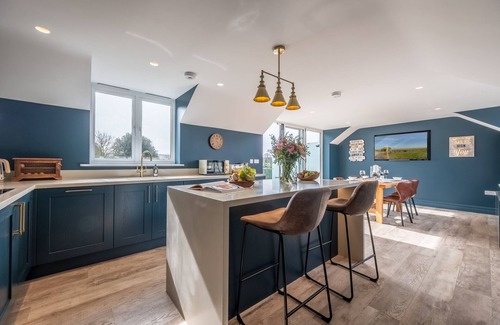 On the first floor, you have multiple options for where to relax. In the snug, two beautiful leather chairs are perfectly positioned to benefit from the warmth of the wood burning stove, with a beautiful bar billiards table behind. Large sumptuous sofas draw you in to the sitting area, beckoning you to nestle in to enjoy a film on the Smart television or dance around to the vinyl record player. On the same floor, a stylishly appointed well-equipped kitchen overlooks the fields to the coastline beyond. The adjacent dining area hosts a table with seating for six guests and offers views of the surrounding countryside. Bring the outside into this space by opening the large bi-fold doors that lead out to the rooftop balcony featuring glass balustrade. Spend sunny days positioned on one of the sun loungers, or enjoy al fresco dining sat round the french style bistro set. In winter months, grab your binoculars to observe skeins of geese noisily flying overhead, and at night you'll be able to stargaze in the clear dark expansive skies.