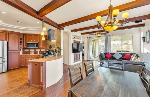 Unwind in this stylish 3-bedroom, 1,700 sq ft Mediterranean-style house in Natomas, located just 5 minutes from both the Sacramento Airport and downtown. With a huge backyard in a safe, quiet neighborhood, this spacious vacation rental can comfortably accommodate groups.