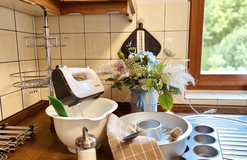 Ihre stille Oase liegt nur 10 staufreie Minuten von der Messe und 15 Minuten von der Innenstadt entfernt. Nutzen Sie kostenfreies Parken auf dem Grundstück und genießen Sie gratis unseren Gasgrill. Gönnen Sie sich himmlischen Schlaf auf hochwertigen Matratzen in einer ruhigen Anliegerstraße auf 1400 m² Grund, komplett eingezäunt, mit eigenem Zugang zum Ludwigskanal. Wir bieten schnelles WLAN (100 MBit/s), viele Steckdosen, 4 TVs, Netflix, Arbeitssekretär, Yogazubehör und mehr. Die Raumtemperatur regulieren Sie digital. Im gut gefüllten Kühlschrank warten Frühstückszutaten und Lebensmittel für ein erstes Abendessen. Kostenfrei genießen Sie Mineralwasser, Tee und Kaffee. Die Kellerbar bietet gekühltes Bier, Wein und Sekt. Im Obergeschoss erwarten Sie drei Schlafzimmer mit TVs und Ausblick: "Clara" (Bett 200 x 200) mit großem Balkon, "Rosa" (Bett 160 x 200) und "Ella" (Bett 120 x 200) mit Blick auf den Ludwigskanal. Das Badezimmer verfügt über zwei Waschbecken, Dusche, Badewanne, Fön, Diffuser, GHD Glätteeisen und Rituals-Pflegeprodukte. Das moderne WC ist im Erdgeschoss. Handtücher und Bettwäsche sind großzügig vorhanden. Bügeleisen/-brett und Steamer finden Sie natürlich auch vor. Im Empfangsbereich liegen das Hausbuch (viele nützliche Infos!), Prospekte zur Umgebung und Reiseführer für Sie bereit. Die perfekt ausgestattete Einbauküche, das gemütliche Esszimmer und das Wohnzimmer mit zwei Couchen, einem 65-Zoll-TV und Stereoanlage bieten Komfort. Im Waschkeller stehen Waschtrockner, Waschmittel und Trockenständer zur Verfügung.