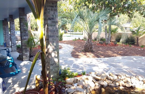 Gulf of Mexico Tropical Oasis on Graveline Bayou across street from the Gulf in Gautier, Mississippi. Only 10-15 minutes to Biloxi casinos, golf, outdoor water sports, beaches, fishing and numerous seafood restaurants. Quiet area on deadend street to Gulf within 500 feet, a short walk to view the Gulf. Catch fish or blue crabs in backyard. (Baskets/traps provided). Launch your kayak or canoe in backyard. Less than 1/4 mile from back yard to Gulf open water or explore the bayous. Sleeps 8 comfortably, new appliances, furniture, new pergola, 10x10 concrete dog kennel and outdoor furniture. Beautiful tropical landscaped yard complete with cascading waterfall. $175.00/nt standard rate or $1100.00 discounted weekly rate. Monthly discount available too.