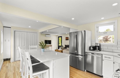The property has recently been renovated and is new to the rental market. This well appointed home is sure to provide all the amenities needed for a relaxing and luxurious stay. The house has a spacious living room with ample seating. The couch opens up to a full sized pull out bed. The primary bedroom has a queen bed and the second bedroom has bunkbeds. All linens are included in the rental. The kitchen is fully equipped with everything you need. Access the patio from the kitchen door where you will find the gas grill and outdoor seating for six.
