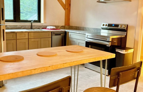 Incredible seacoast location a block off the water--in one of the only neighborhoods within easy walking distance of both Market Square, Portsmouth and Kittery. This stylish studio loft is in a newly constructed timber frame structure that boasts high ceilings, quartz counters, and a private deck facing a wooded area. Ideal for couples or single travelers. Open concept living with a comfortable queen bed, perfect for a good night's sleep. Enjoy the convenience of off street parking, on site washer and dryer and the comfort of new ac/heat and a smart tv to stream your favorite shows. Crate and Barrel furnishings and tasteful clutter free decor. Safe, tree lined street in upscale neighborhood close to top tier restaurants, cafes and shops...and fresh lobster of course. Excellent beaches are a short drive away. Summer evenings can be spent strolling through the historic beauty of Portsmouth, attending free concerts at Prescott Park, or a show at local favorites The Music Hall or Jimmy's Jazz Club. Host is from the area and can make recommendations that ensure you see the best of what the Seacoast has to offer, including some lesser known gems.