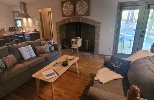 Sleeps 5. Peace and quiet. 2 level mountain Resort Cottage fully paved, No need for 4x4. 10 minutes to local restaurants, Antique shops and markets. Modern with upscales living to make your stay an experience. 2 comfortable foam mattress, 1 king and 1 Queen, and an additional queen sleeper sofa. Two full bathrooms , 1 with a walk in shower. Main level Washer and Dryer. Full side carport and pool table. 2 exterior covered seating areas, a marshmallow roasting fire pit and plenty wild life.