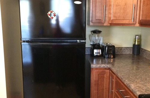 The hose is furnished with one queen bed in the master bedroom and a set of full size over full size bunk beds in the second bedroom. The house will comfortably sleep 6 people. There is a large desk and chair in the living room, a papazan chair and a leather sofa with coffee table and a 40" smart TV in the living room. The dining room has a counter height table and four chairs. The kitchen is equipped with everything you need for basic cooking including: coffee pot, toaster, blender, pots, pans, cutting board, knives, dishes, glasses, silverware and cooking utensils.