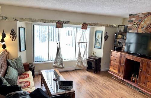 The "Shangri-La Massage & Spa Suite" boasts unique Old World charm with eclectic inspired decor and complimentary modern accents. Offering 2 bedrooms with “Asian Spa-inspired Washing Room.” This unit is one of few to offer high speed optic wi-fi/internet & cable in the Alpine Village. Ski-out and walk-in access during Ski Season. Unwind with your personal 24/7 Full-body Deep Tissue Massage Chair. Take time warming your inner-core with our in-floor washing room heating, and shower!